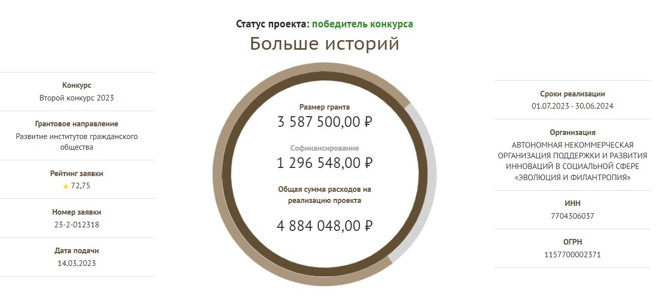 Цель проекта – способствовать тому, чтобы НКО сферы детства активнее вовлекали своих благополучателей (детей/подростков/молодых взрослых от 10 до 23 лет, а также их родителей или законных представителей) в свою деятельность, проводили оценку с участием благополучателей, научились на системной основе слушать и слышать их голос (сторителлинг), совместно обсуждать результаты оценки и идеи по улучшению социальных программ. Хотя и сами НКО, и доноры, и органы власти заинтересованы в большем вовлечении благополучателей (в частности, задача расширения механизмов участия детей в принятии решений, затрагивающих их интересы, включена в план мероприятий Десятилетия детства), тем не менее, в настоящее время практически отсутствует соответствующая база знаний по использованию сторителлинга в оценке программ, описанные кейсы, а в процессе внедрения у НКО возникает немало вопросов, которые они бы хотели обсудить со специалистами-практиками, которые имеют соответствующий опыт и компетенции. В рамках проекта мы предоставим НКО бесплатный доступ к уникальному специализированному курсу МГППУ по организации участия детей в принятии решений; разработаем и проведем серию методических вебинаров и мастер-классов по теме использования сторителлинга как метода вовлечения благополучателей в оценку программ и дадим возможность получить комплексную индивидуальную поддержку “под ключ” (конкурсный отбор не менее 10 НКО). Широкий пул сформированных партнерств (Ассоциация грантодающих организаций “Форум доноров”, Ассоциация фандрайзеров, Медиа-клуб АСИ-Благосфера и др.) позволит рассматривать преимущества и ограничения сторителлинга для разных организационных процессов и стейкхолдеров, а совместные публичные мероприятия федерального масштаба с участием представителей органов власти (Аппарат Уполномоченного по правам ребенка) и научного сообщества (МГППУ) будут способствовать популяризации темы и росту культуры и механизмов вовлечения благополучателей сферы детства в принятие решений. Таким образом планируется развитие поддерживающей среды для более активного и масштабного внедрения этих практик в деятельность НКО. Все материалы проекта предполагается размещать в открытом доступе, онлайн-формат обеспечит участие в проекте НКО из любых регионов РФ. На основе обучающих материалов, а также кейсов сопровождаемых НКО, дискуссионных и публичных материалов будет подготовлено специализированное онлайн-руководство, которое обеспечит для НКО и организаций сферы детства доступность методических материалов по теме вовлечения благополучателей в оценку, системного использования сторителлинга.